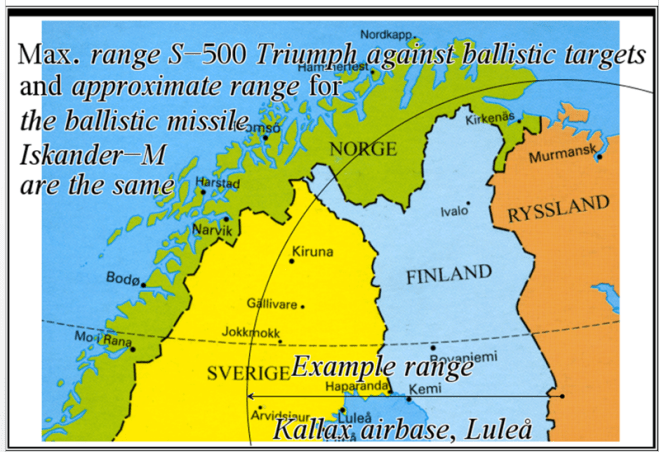 The head of the Russian General Staff, Nikolaj Makarov stated in an article published on November 17, 2011 in the Washington Post that; “Under certain circumstances, local and regional conflicts may escalate into a full-scale war, involving nuclear weapons.” Can it be said any clearer? Putin may have his aim at small non-nuclear and non-NATO countries like Sweden, Finland and Georgia when he spoke of preventive Russian attacks, if Iskander has a range of >500 kilometers with a 750 kg nuclear charge.